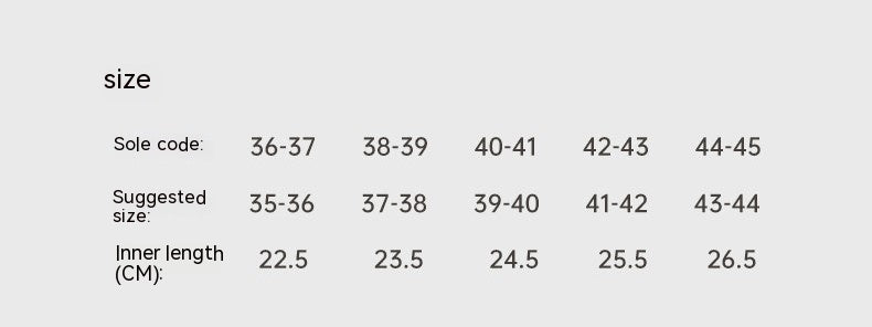 Size: 36-37 suitable for 35-36,38-39 suitable for 37-38,40-41 suitable for 39-40,42-43 suitable for 41-42,44-45 suitable for 43-44