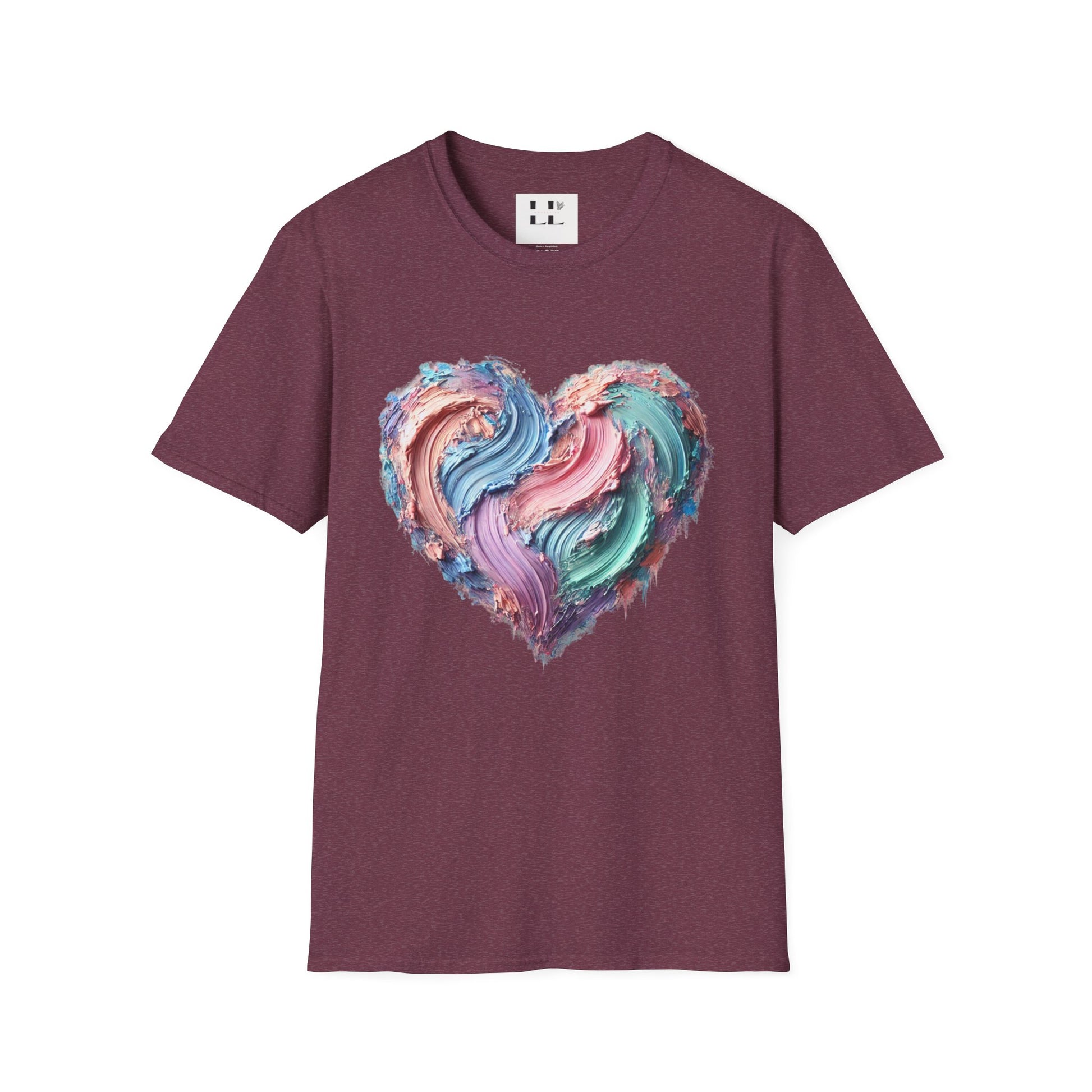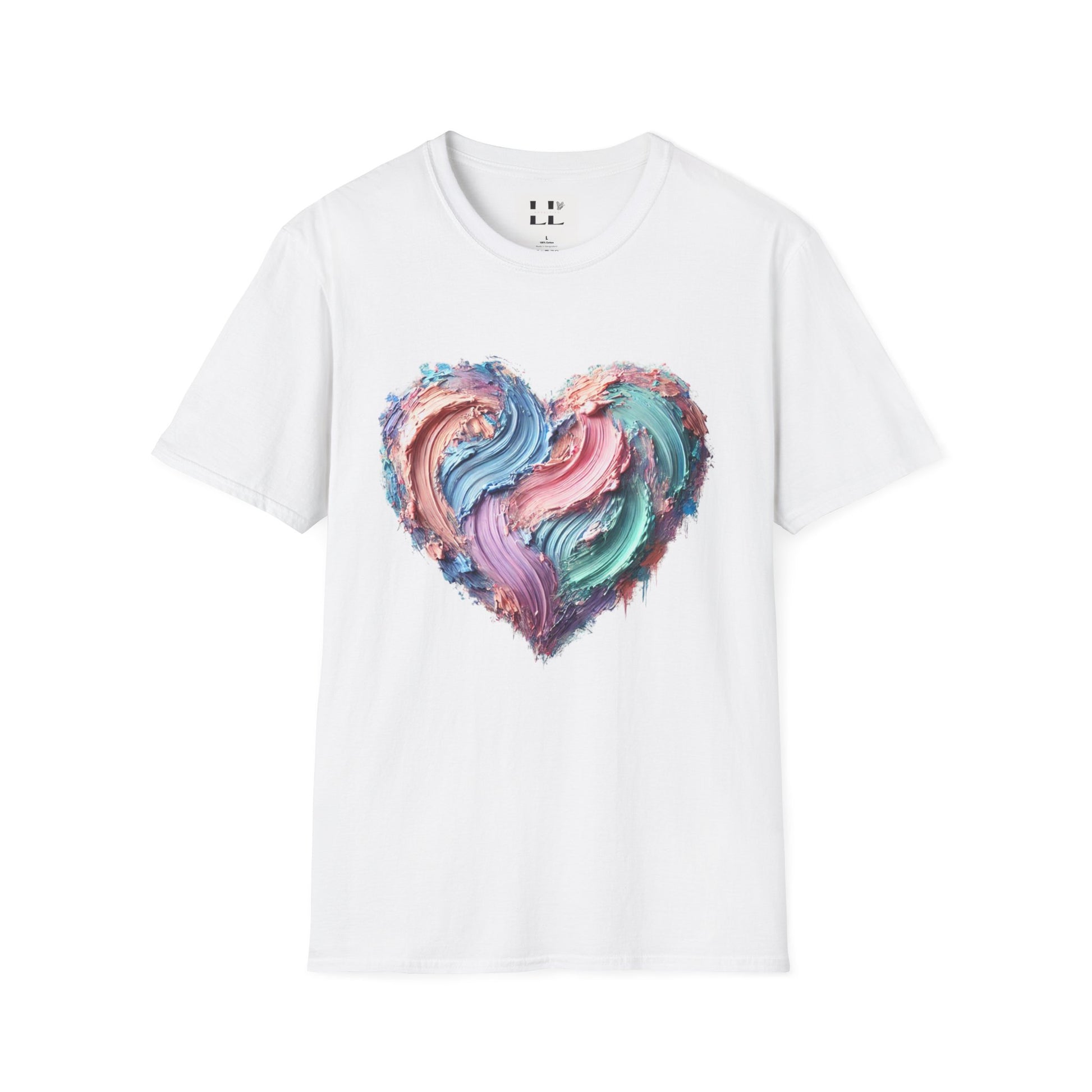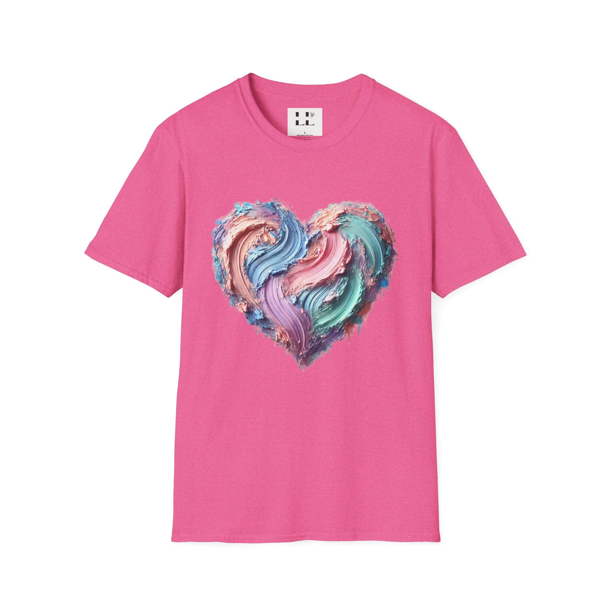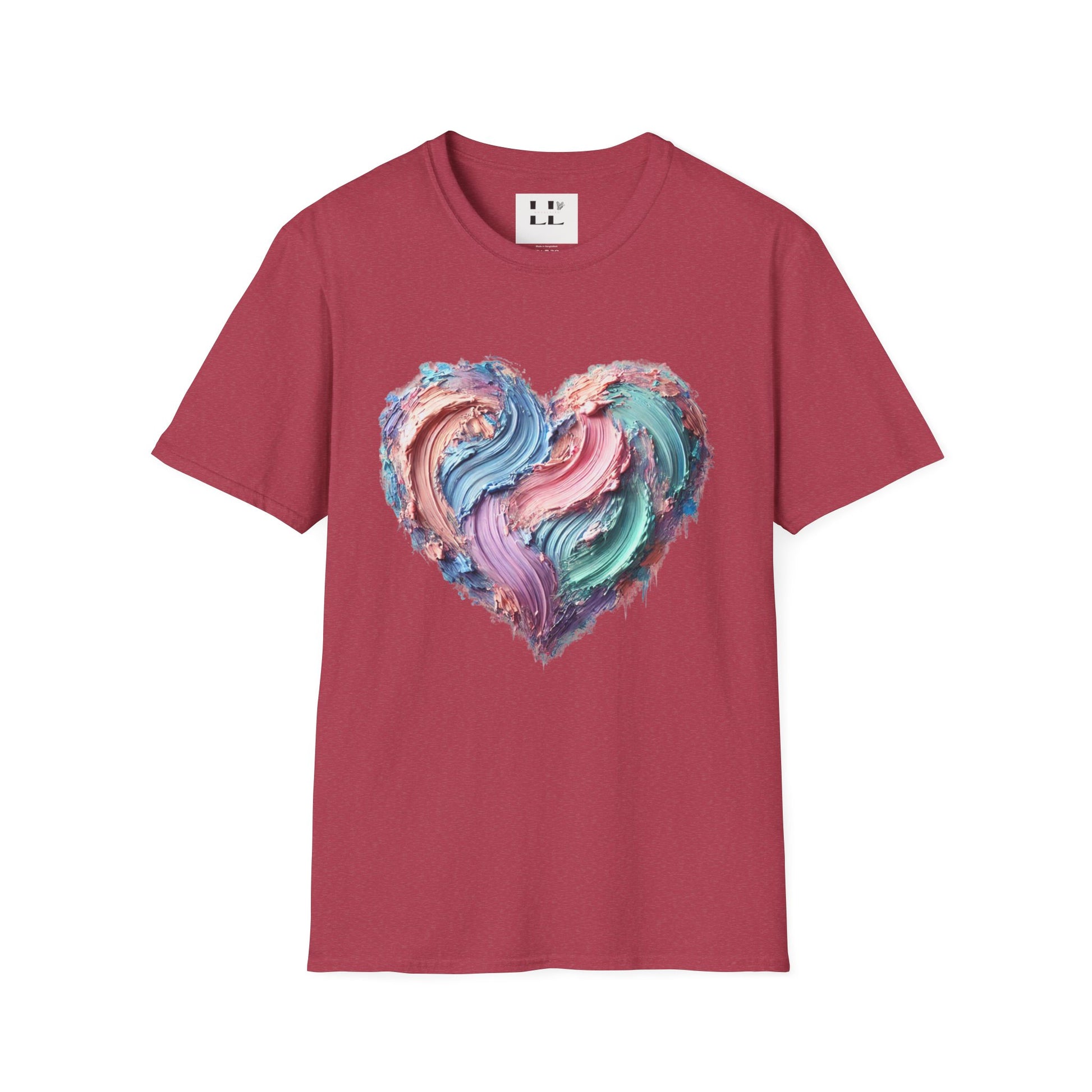 This Unisex Softstyle T-Shirt is perfect for those who embrace creativity and self-expression. Featuring a vibrant heart design, it radiates warmth and positivity. The lightweight and breathable fabric make it ideal for year-round wear, whether you're lounging at home or out with friends. Its classic fit and clean neckline allow for versatile styling, making it a great choice for any occasion—from casual outings to more formal gatherings. This t-shirt is perfect for art lovers, trendsetters, or anyone looking to uplift their wardrobe. It’s a wonderful gift for holidays such as Valentine’s Day, birthdays, or just to show someone you care.