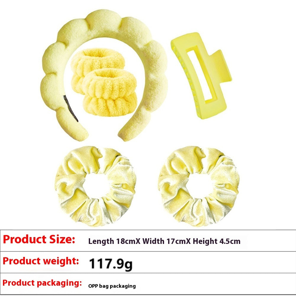 Accessory bundle includes multiple pieces (headband + hair band + hair rings) for maximum versatility.