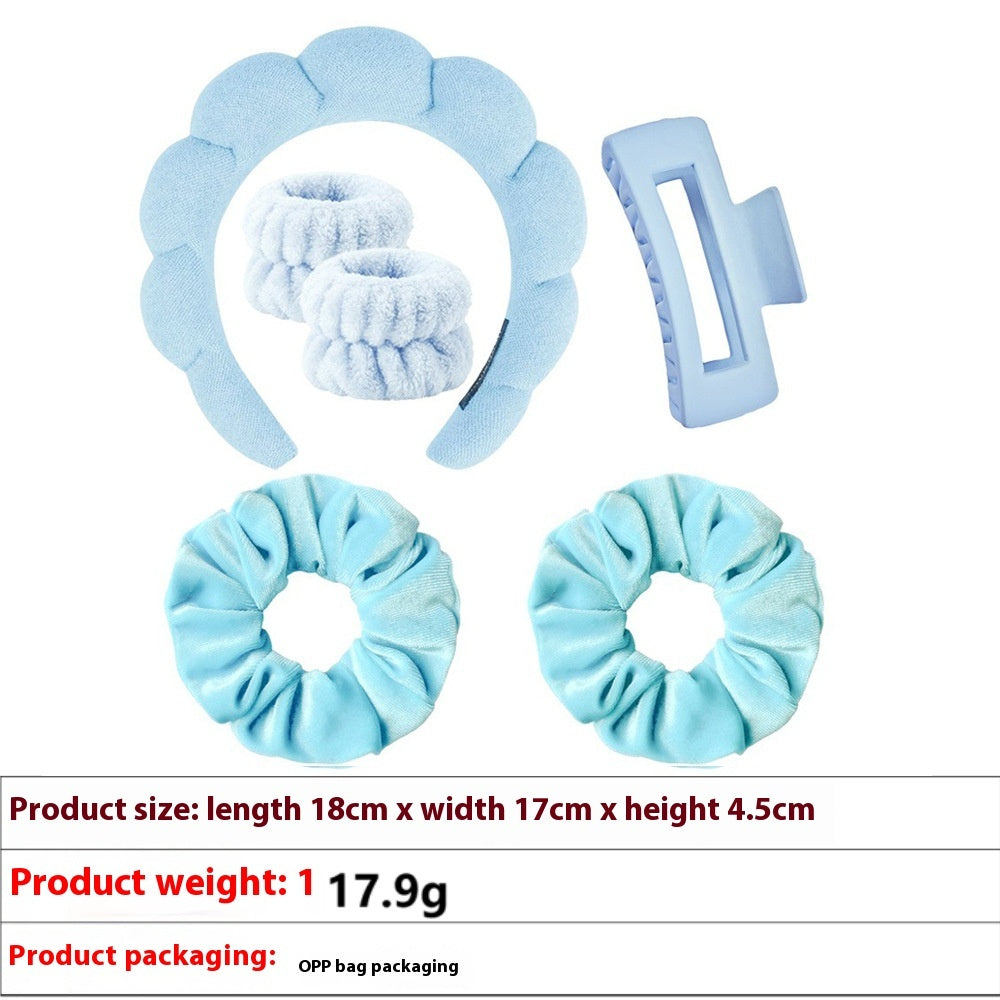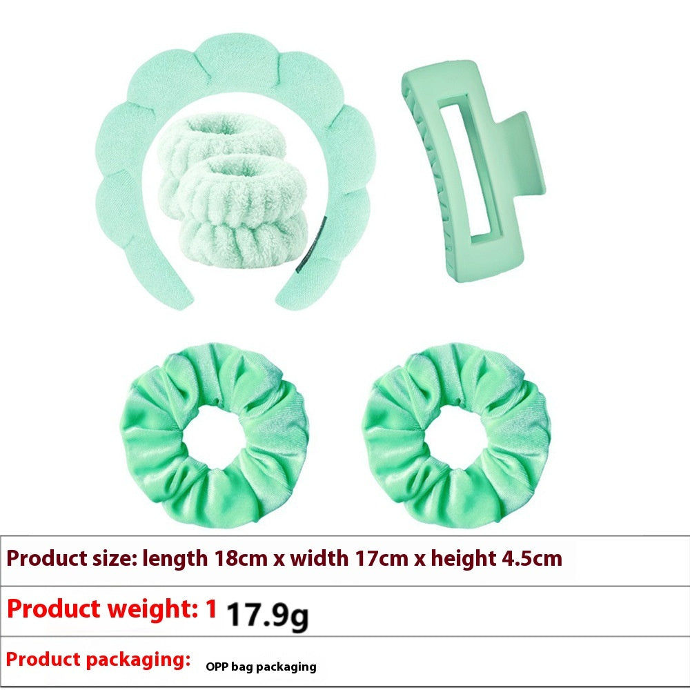 This curated set combines a stylish top with a faux-leather headband and essential hair-accessory pieces—perfect for styling your hair and prepping for makeup with ease.