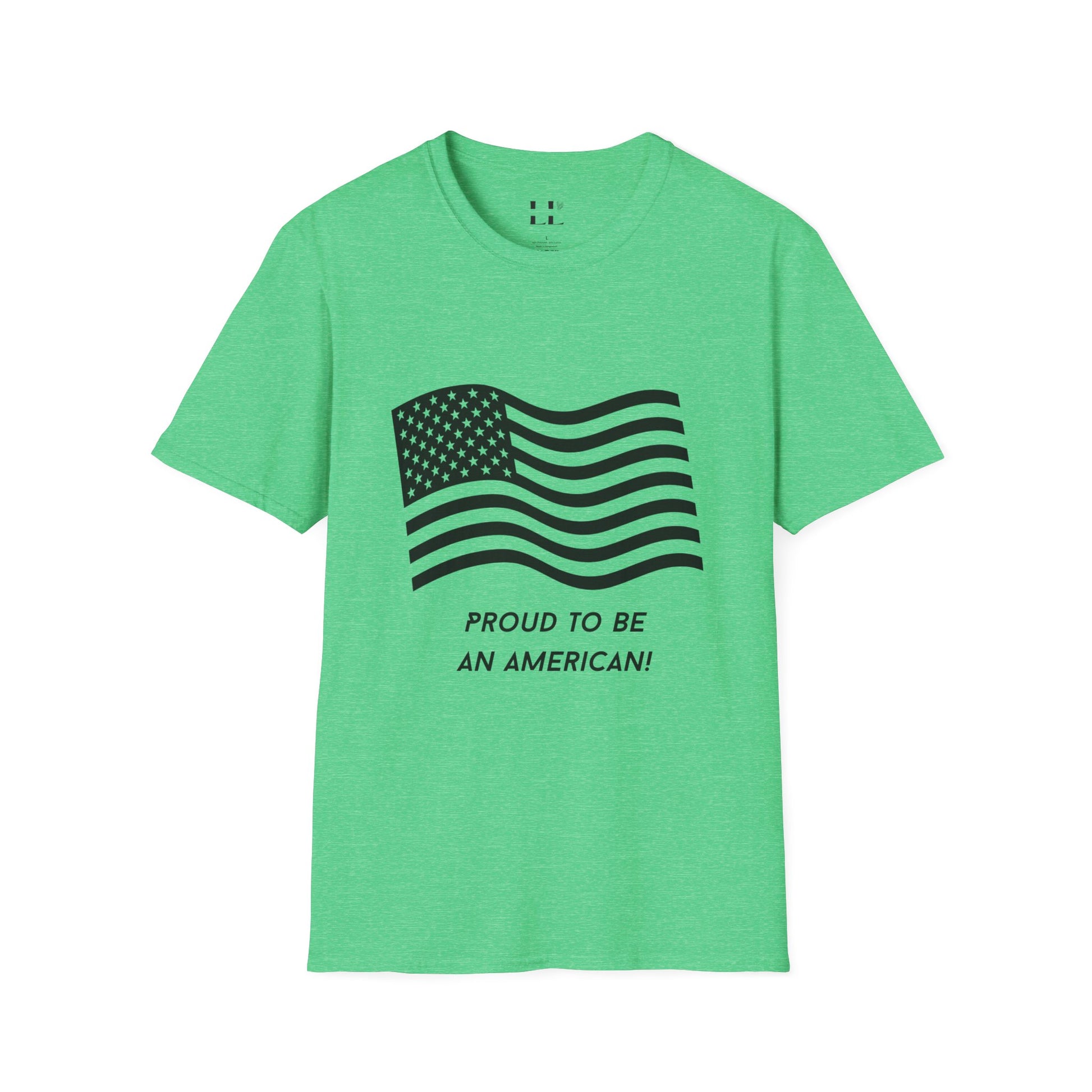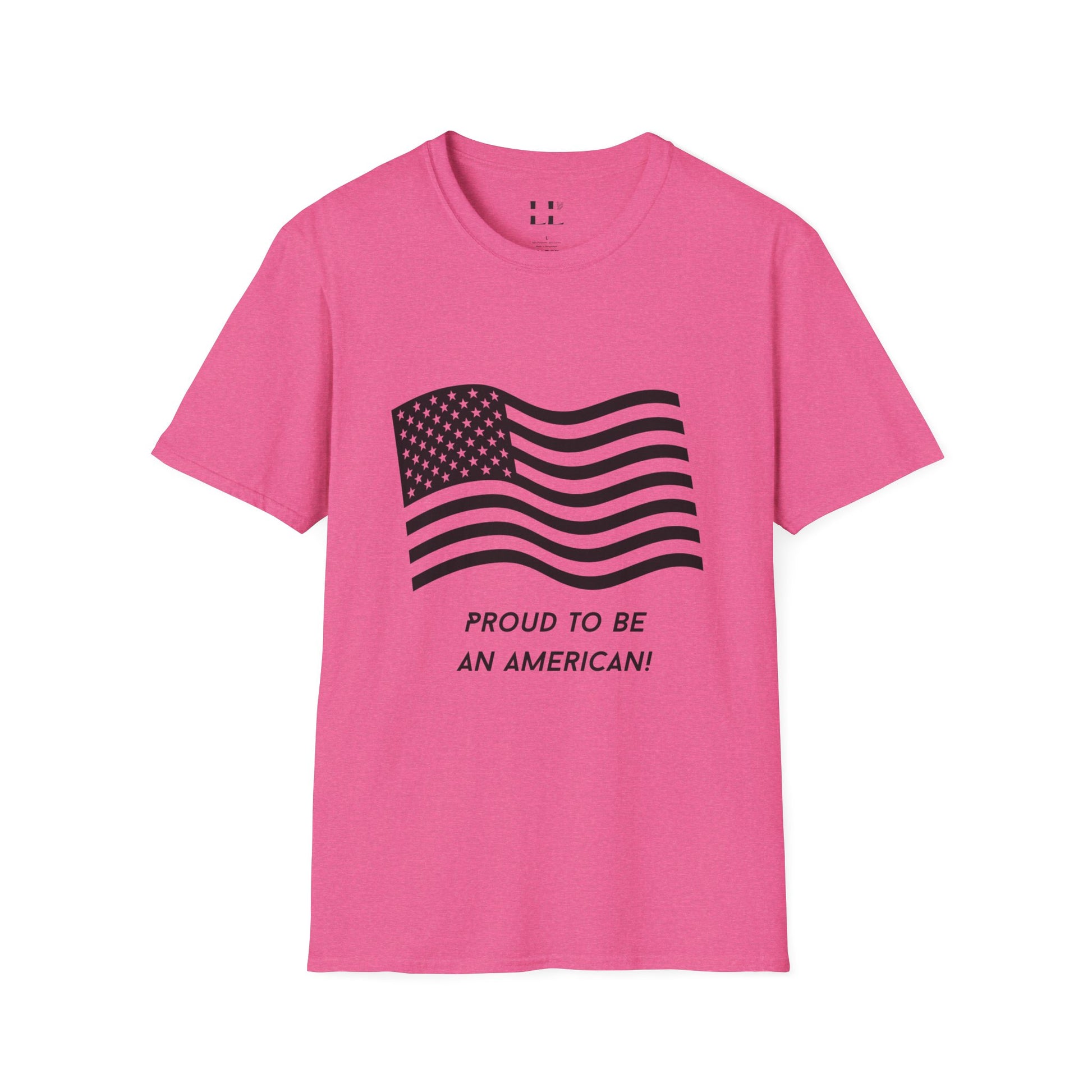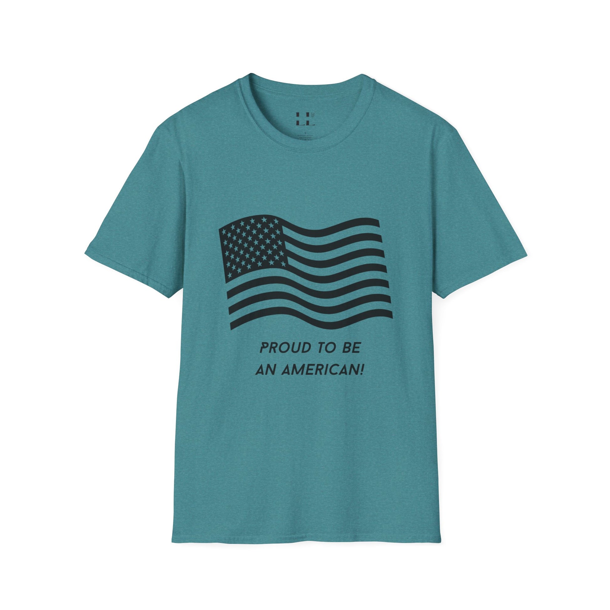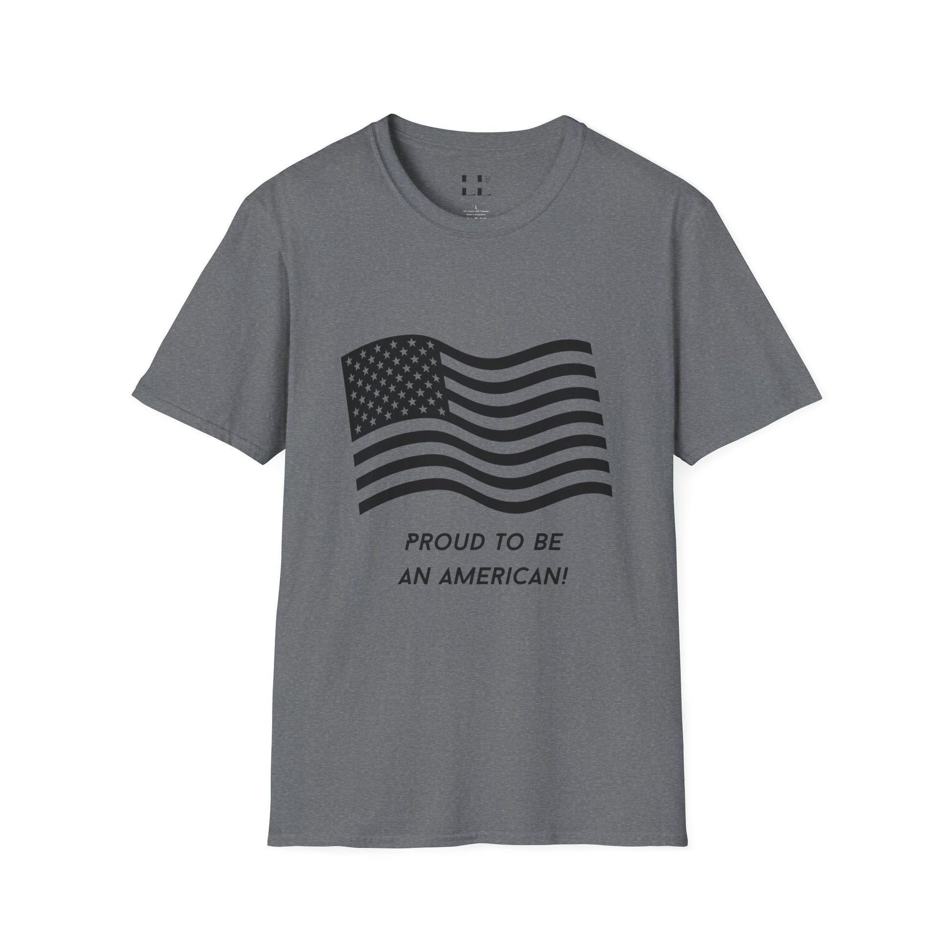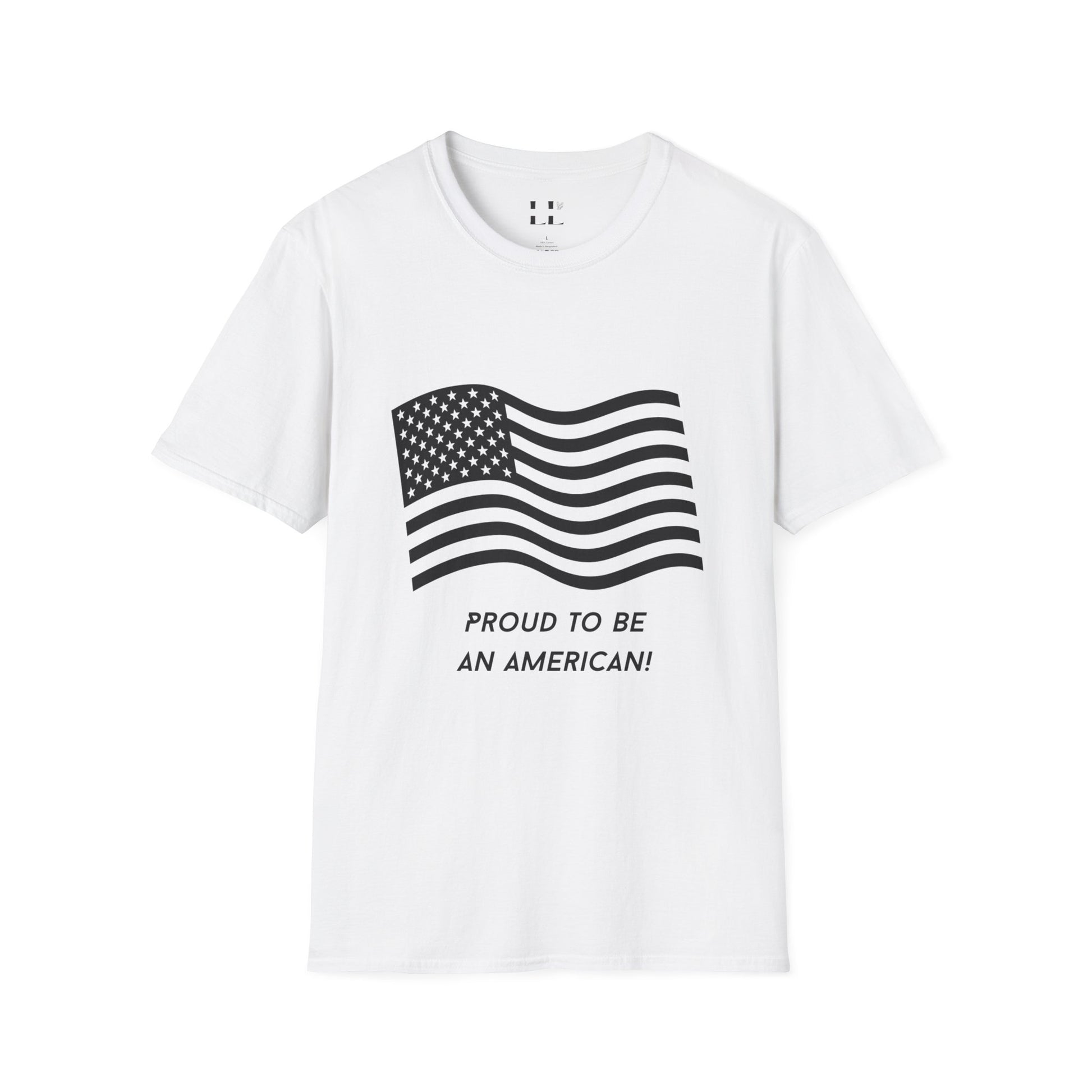 Proud to Be an American T-Shirt | Flag | Black Print - Unisex Softstyle Tee